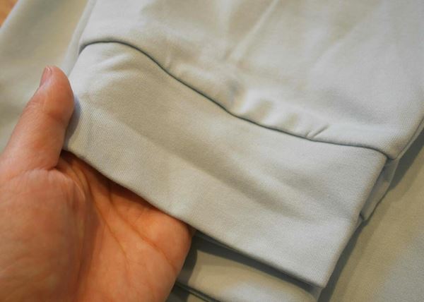 足首周りもリブで程よく裾が絞られており、きつさは一切なし。楽な着心地のまま、熱が逃げにくいような感覚があります。丈の調整がしやすいのも嬉しいポイント。