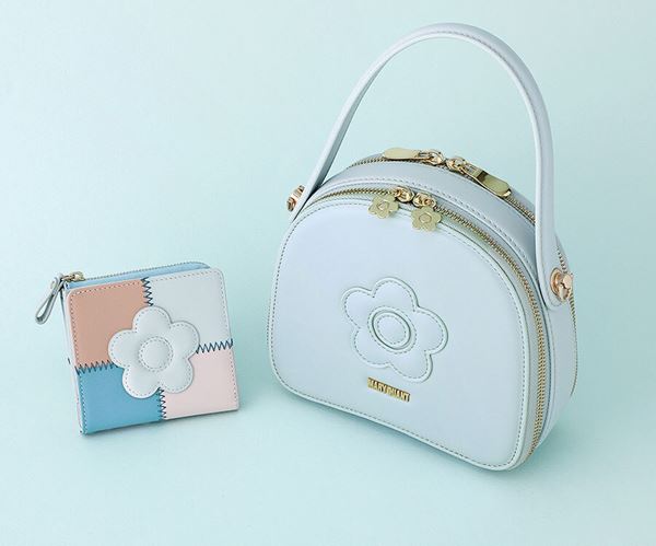 マリークワントのブランドロゴであるデイジー柄のアイテムも展開され、「デイジーパッチムーヴミニトート」や「シンプルエンボスデイジードロストショルダー」といったバッグから、「パッチワークウォレット」「デイジーポイントソックス」など、コーディネートのアクセントになるものが勢揃い!
