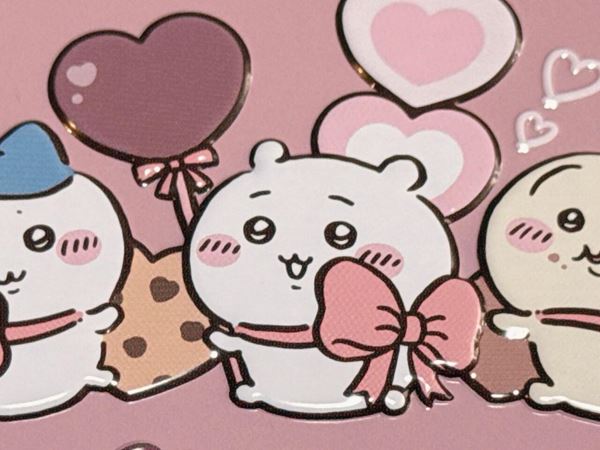 ちいかわたちや散りばめられたハートは、エンボス加工が施されており、ぷっくり感が超キュート♪三者三様にバレンタインを楽しむ姿も尊すぎる〜!