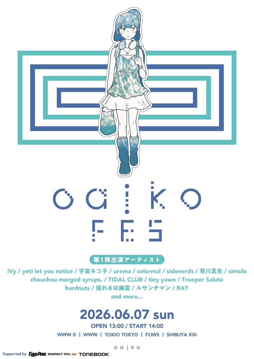 さらに、Eggs Passにて、出演者オーディションの開催も決定。優勝者には『Oaiko FES 2026』への出演権に加え、Oaikoによる音源リリースが予定されている。