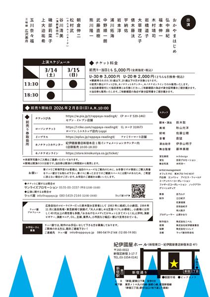 2026年3月14日(土) 13:30/18:30開演・3月15日(日) 13:30開演
