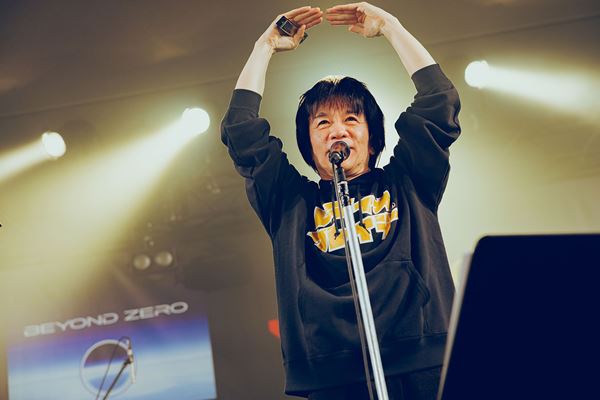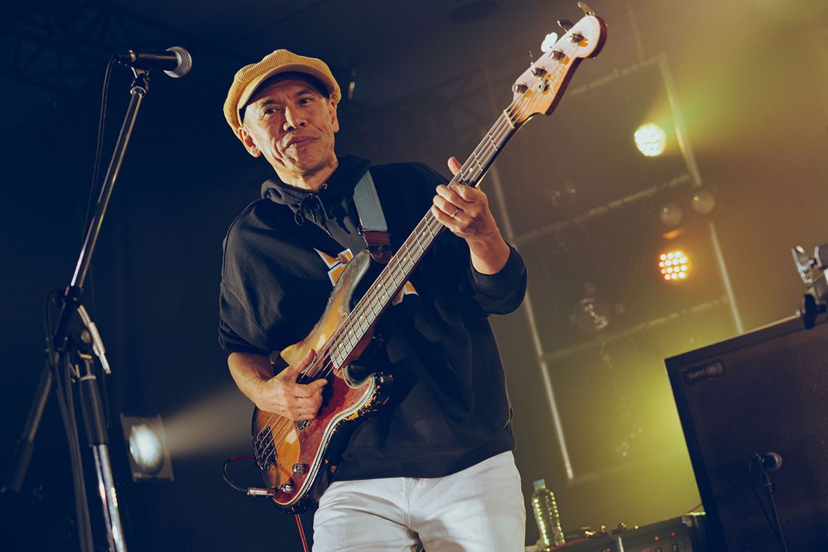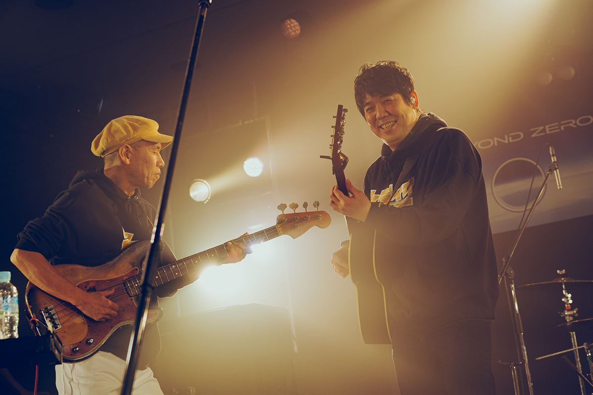 そして、今演奏した「フィクション」は、敬愛するアーティストをプロデューサーに迎え、スキマの楽曲をリアレンジ・リプロデュースするという企画アルバム『re:Action』でフラカンがプロデューサーとして参加した1曲であり、「それがきっかけでスキマと共にNHK「あさイチ」に出演できました。レアなバンドなのでこんな機会をもらえてうれしい」と、フラカンのグレートマエカワ(b)。うれしいついでに今回はザ・ライターズのユニフォームとしてお揃いのパーカーで登場したが、「おじさんのパーカーはNG」とSNSで話題になったことを知り、「俺なんて普通の小さいおじさんだよ」と自虐する鈴木のMCに場内は大爆笑だ。
