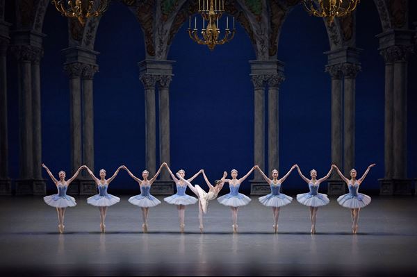 バランシンが1947年に発表した『テーマとヴァリエーション』は、チャイコフスキーと帝政ロシア・バレエへのオマージュとして知られている。ステップや身体の動きでチャイコフスキーの音楽がより細かく表現され、優美で品格漂う作品だ。新国立劇場バレエ団では2000年の初演以来再演を重ね、アンサンブルの美しさで高い評価を受けている。