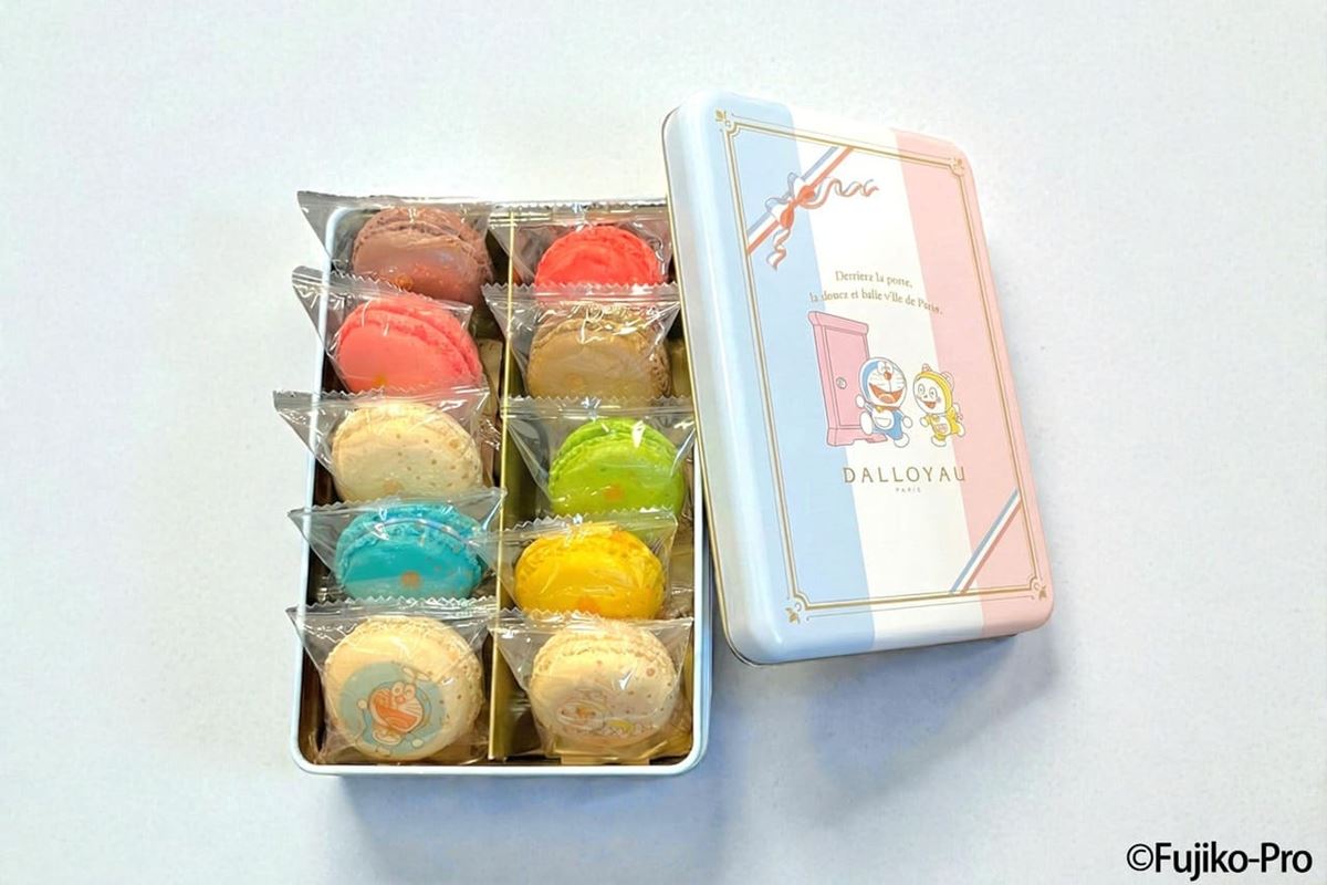 ダロワイヨのスペシャリテであるマカロンを詰め合わせた「ドラえもん マカロン缶」は、淡いブルーとピンクを基調としたドラえもんデザインの缶が印象的。
