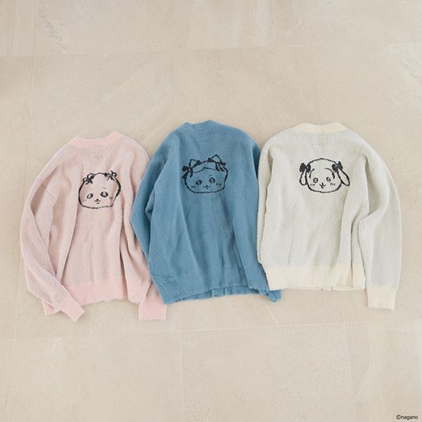 その他、ちいかわ・ハチワレ・うさぎが揃ったアートをプリントしたロングTシャツや、リボン姿をデザインしたニットカーディガンなど、日常にちいかわたちが癒しを添えるアイテムが勢ぞろい♪