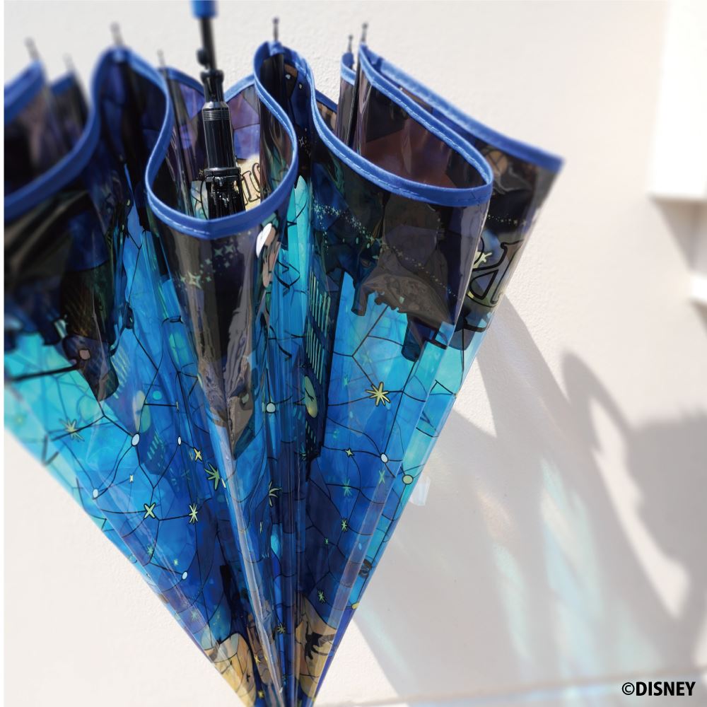 傘を広げると、光を通してディズニーキャラクターが透けて見え、ステンドグラスのようにきらめきます。
