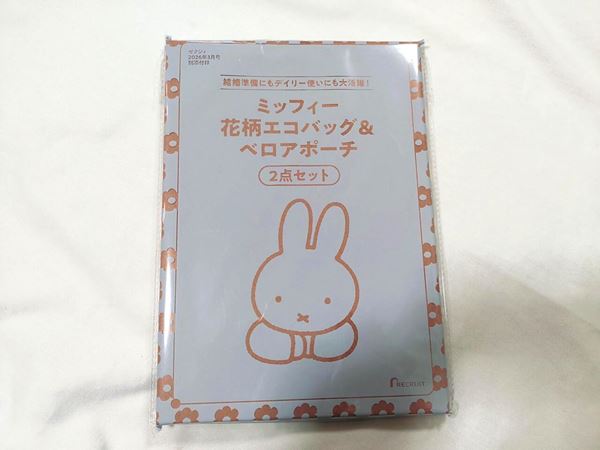 1月22日に発売された結婚情報誌『ゼクシィ』3月号の付録は、ミッフィーの「花柄エコバッグ&ベロアポーチ」です。