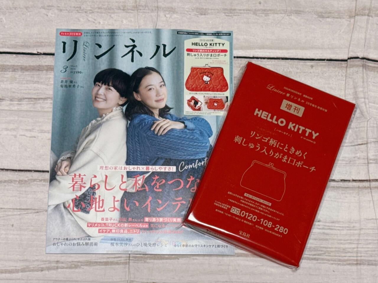 【付録レビュー】見た目以上に大容量♪リンネル付録ハローキティがま口ポーチが可愛くて使いやすい!