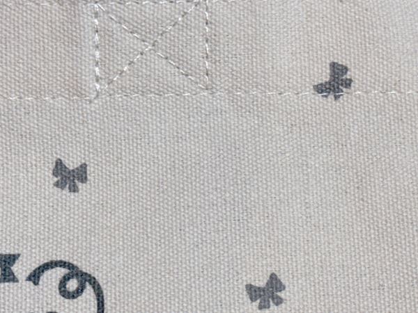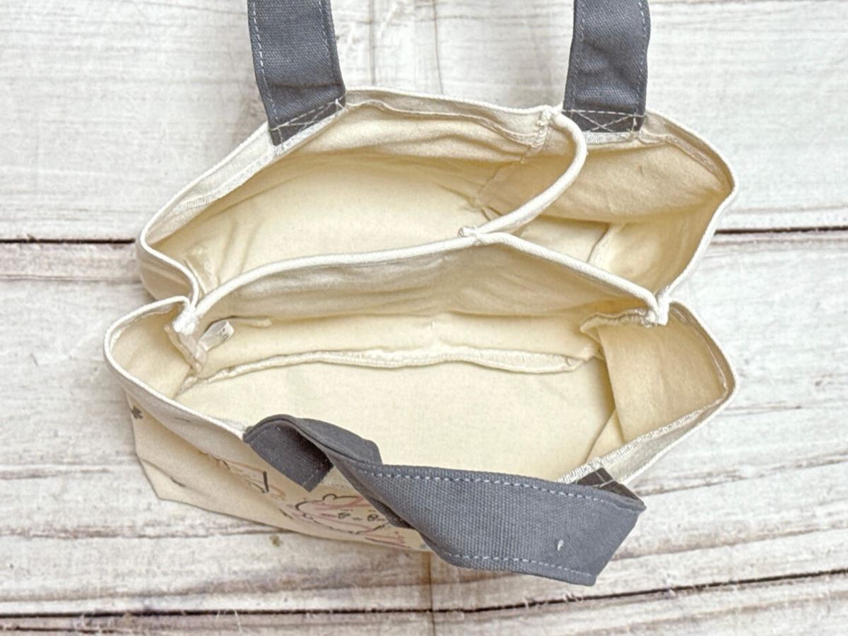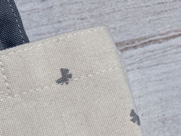 厚手で丈夫なコットンキャンバス調の生地が使われており、550mLペットボトルや単行本もすっぽり収納可能!持ち手は、手で持ったりハンドバッグ風に持てる長さです。