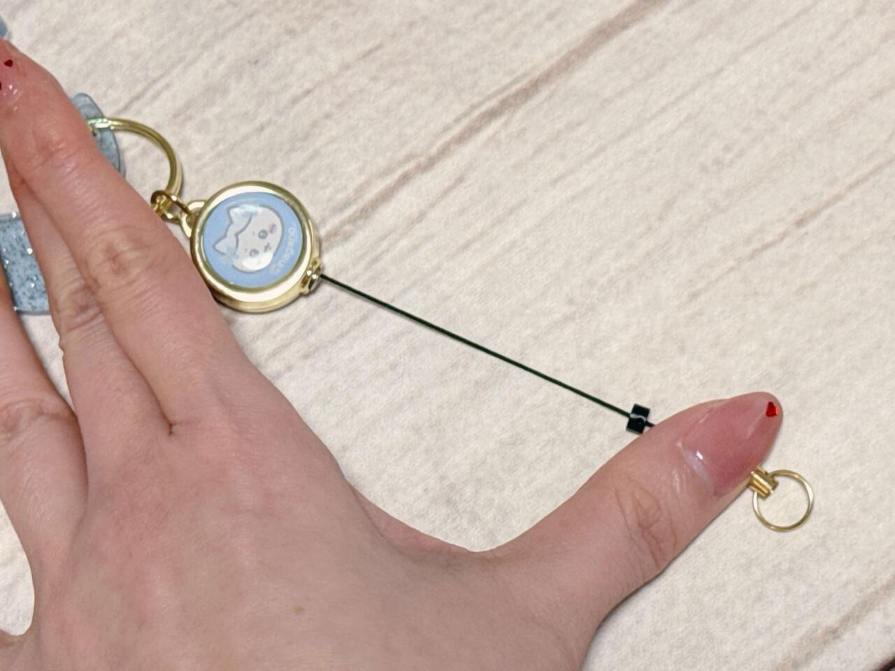 キーリング部分はリール仕様で、バッグにつけたまま伸ばして使えるのが便利