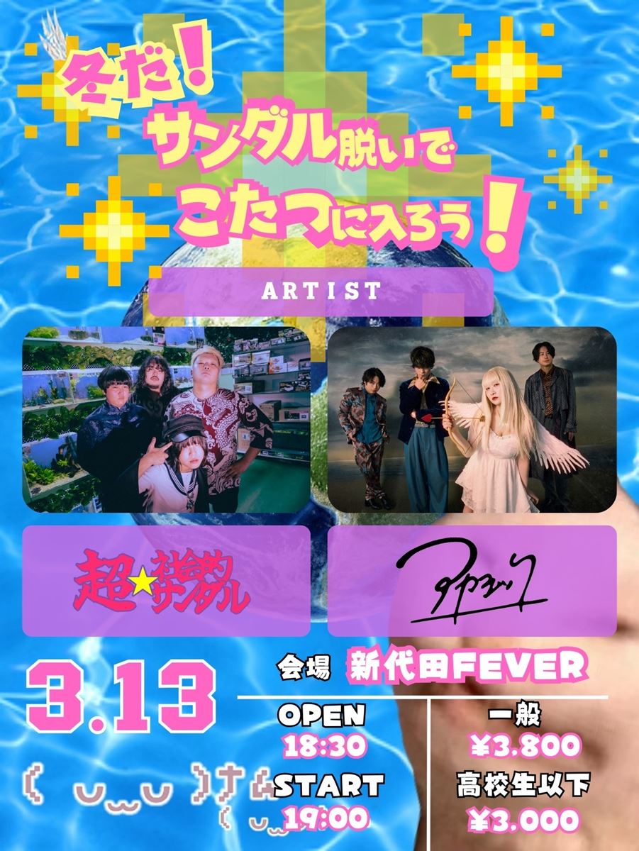 すべて見るロックバンド・超☆社会的サンダルが、冬の主催企画ライブ『冬だ!サンダル脱いでこたつに入ろう!』を3月13日(金)東京・新代田 FEVERにて開催し、併せてアカシックが対バンゲストとして出演することを発表した。