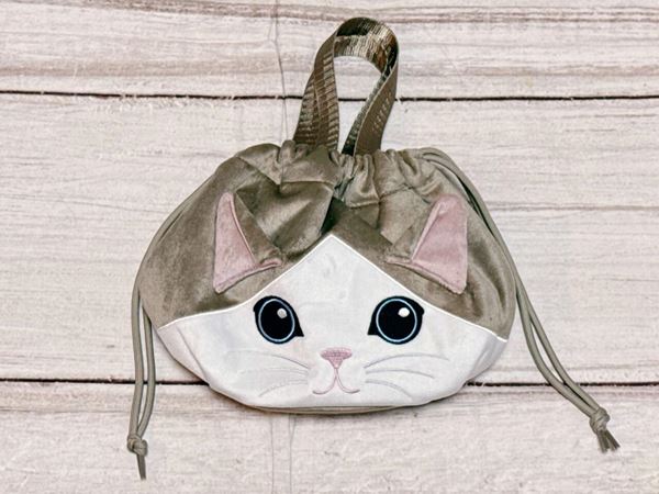 猫のお顔がそのまま保冷巾着になったデザインで、ふんわりやわらかな手触り。まるでぬいぐるみを持ち歩いているような感覚が楽しめます♪