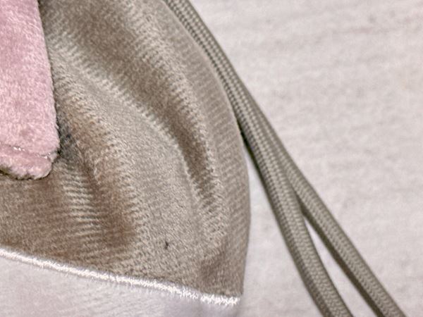 実際に手に取って驚いたのが、生地の高級感。上品な光沢のあるベルベット調素材が使われており、大人が持ってもチープに見えないのがうれしいポイントです。