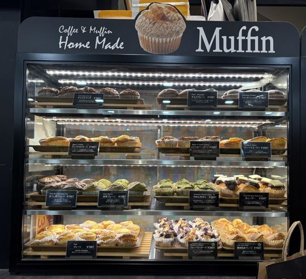 特筆すべきは、これらのマフィンが店内で焼き上げられていること。運が良ければ焼きたてに出会えることもあり、外はカリッ、中はしっとりふわふわの食感は、専門店にも引けを取りません。
