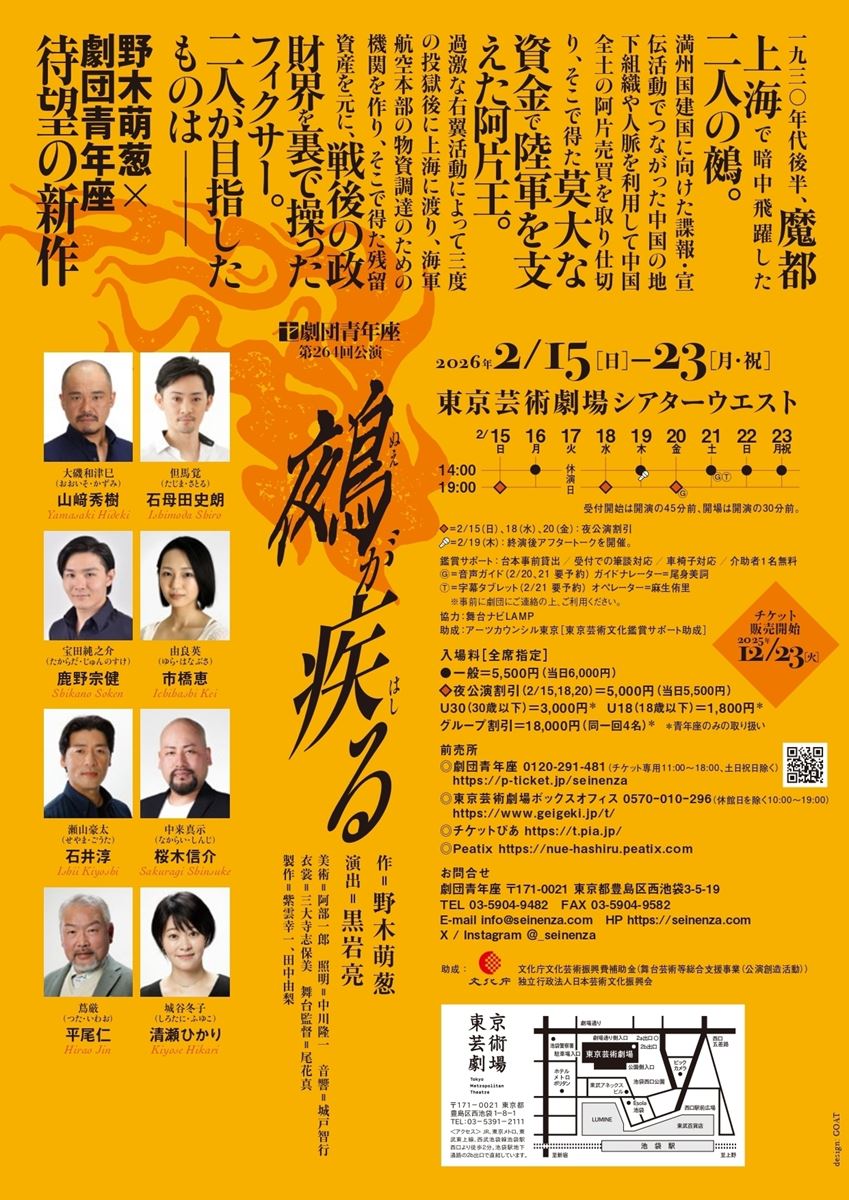 劇団青年座『鵺が疾る』 野木萌葱×黒岩亮が4度目のタッグで歴史の裏側を描く 画像(/2)