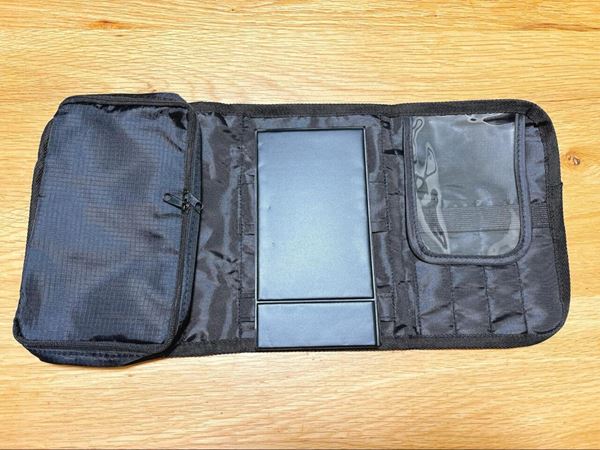 旅行用コスメポーチとしてはかなり大きめサイズで、メイク道具一式をしっかり収納できます。シンプルな黒のデザインで汚れも目立ちにくく、長く愛用できそう!