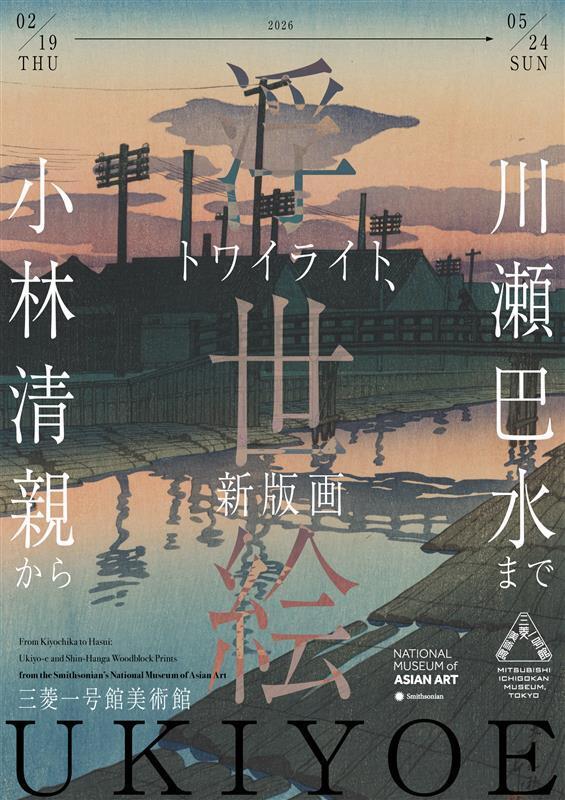 アメリカ建国250周年という記念の年に、スミソニアン博物館群のひとつである国立アジア美術館から、選りすぐりの浮世絵、新版画、写真などの日本美術コレクションが、かつてない規模で里帰り。明治時代に最後の浮世絵師と呼ばれた小林清親(きよちか)から、明治末期に浮世絵の復興を目指した川瀬巴水(はすい)ら「新版画」の旗手たちまで、約130点で風景版画の流れをたどる。