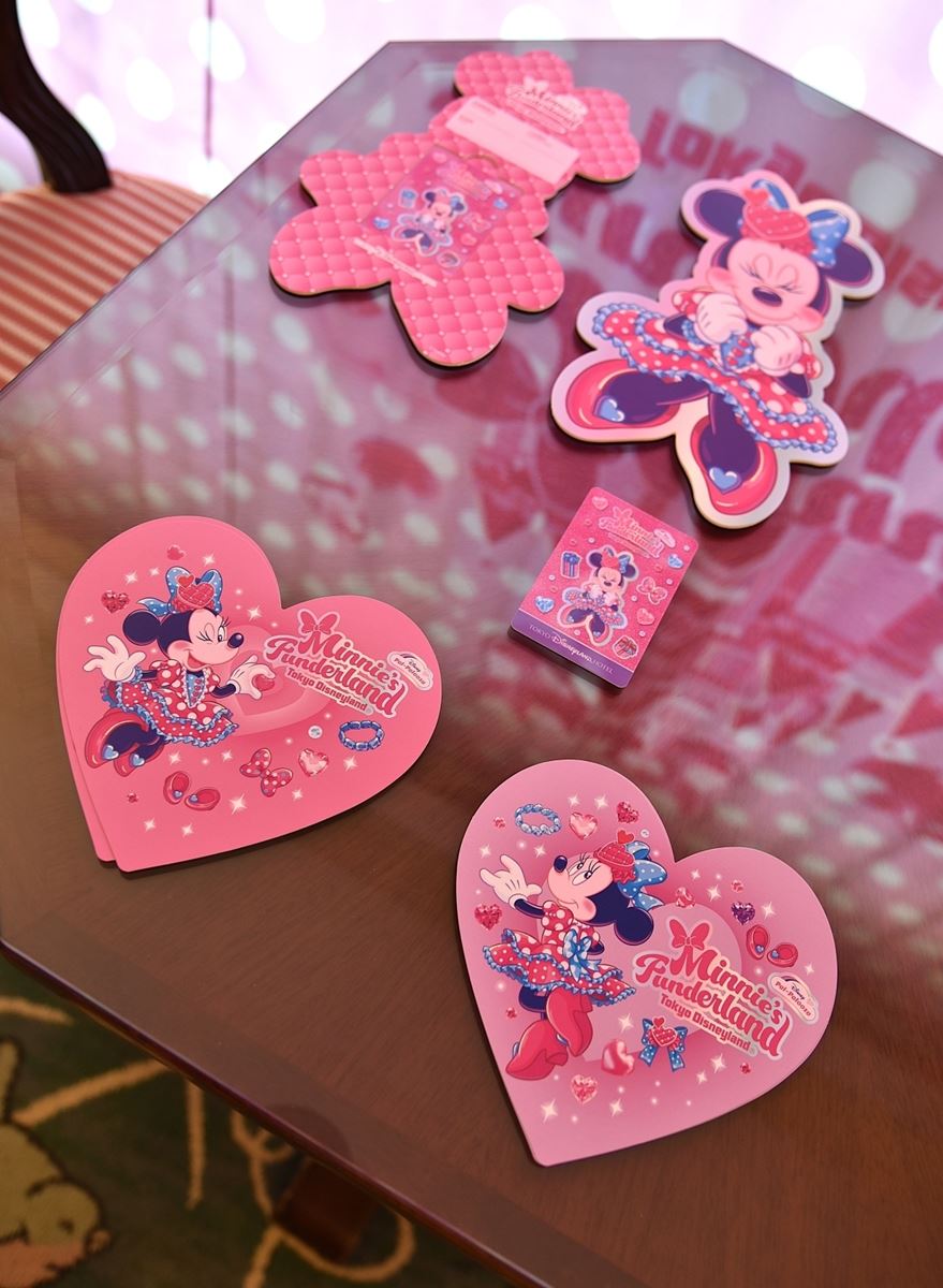 キュートなミニーが描かれたハート型のポスカは、宿泊の思い出と一緒に持ち帰ることができます。