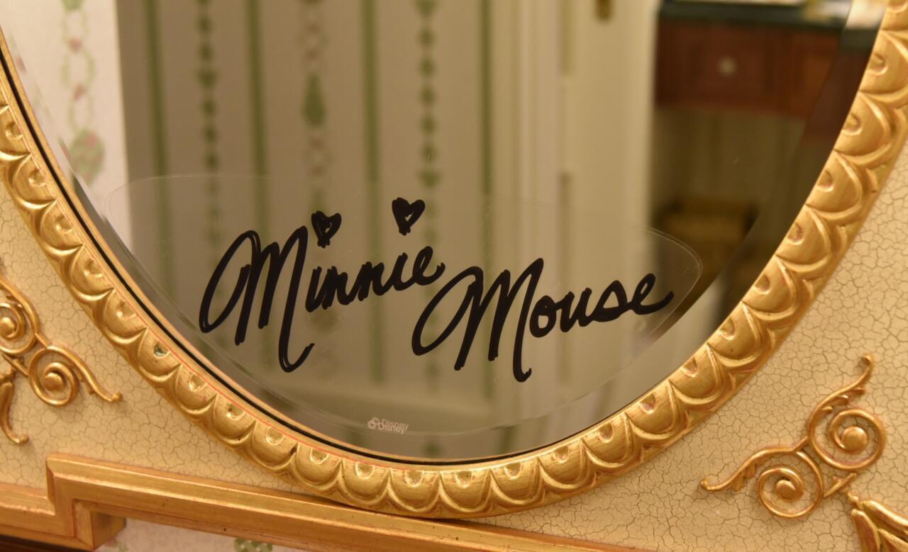 お部屋に入ってすぐの所にある鏡には、ミニーマウスのサインもあるので見逃さないで。