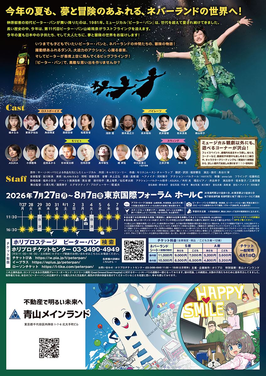 ブロードウェイミュージカル『ピーター・パン』山﨑玲奈が2026年で卒業 新フック船長は内海啓貴、長谷川寧演出版も最終年へ