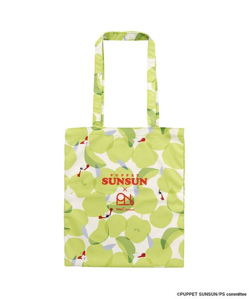 Wpc. Patternsから発売されるトートバッグとスクエアポーチには、本ブランドで人気のりんごモチーフ「オメナ柄(2色)」を採用。爽やかな色味のりんごからスンスンやノンノンがひょこっと顔をのぞかせるデザインがかわいい!