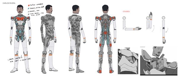 公開されたのは、安元洋貴が演じるアンドロイドのカルロスによる華麗な犯人確保までの格闘シーン。サイバー法(※)を逆手に取ったカルロスならではの戦い方が垣間見える一幕と合わせて、カルロスの内部構造図も特別に公開された。