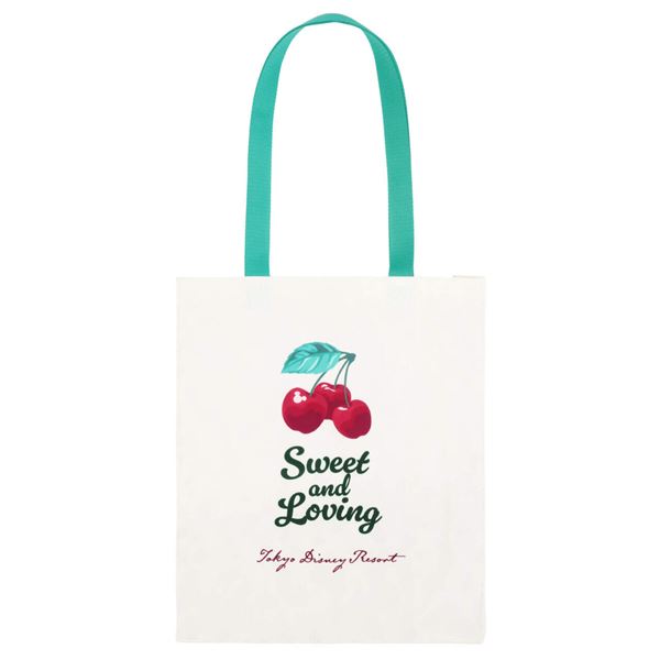 トートバッグには、ケーキにさくらんぼを飾るミニーをプリント。