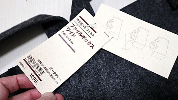 最初は「バッグっぽい使い方もできるかな?」とイメージしていたのですが、実物は完全に「ファイルボックス」でした。角がしっかり立っています。