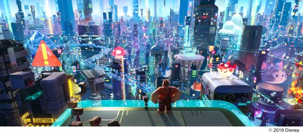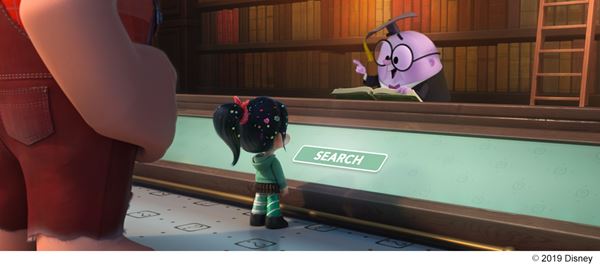 この度公開された本編映像は、思わず共感してしまう“インターネットあるある”が、ディズニーアニメーションとなって描かれたシーン。日常生活の中で、自由に調べたい事を検索したり、動画や音楽を楽しんだり、ショッピングをしたりと、現代に欠かせなくなっている“インターネット”が、本作ではわかりやすく表現されている。インターネット世界そのものは、高層ビルがそびえ立つカラフルな巨大都市となり、古いウェブサイトのうえに、新しいウェブサイトが構築され、すべての建物が繋がっているようになっていたり、インターネット・ユーザーはアバター化され、WEBページを移動する事をカプセルのような乗り物に乗ることで表されている。