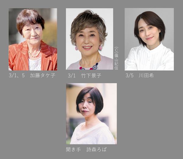 2026年3月1日(日) 14:00:竹下景子、加藤タケ子(きぼう・未来・水俣 代表理事)、詩森ろば