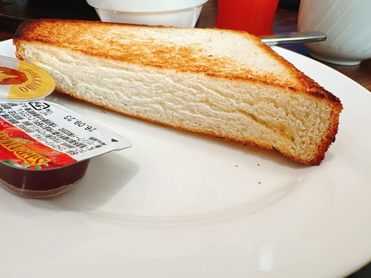 【ジョナサン ハーフトースト&ゆで卵モーニング】ハーフトースト&ゆで卵モーニングの湯種食パンは厚切りで食べ応えがあってコスパ良し!