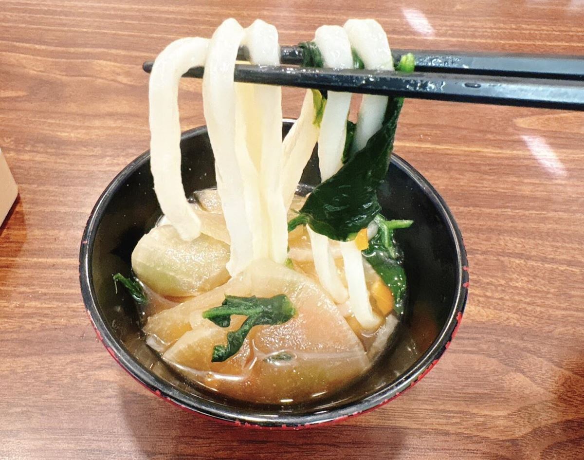 透き通ったお出汁は鶏と野菜の旨味が効いていて、寝起きの体にめちゃくちゃ染みます。飲みすぎた翌朝や、胃がお疲れ気味の時には、正直このうどんが神様に見えますよ。