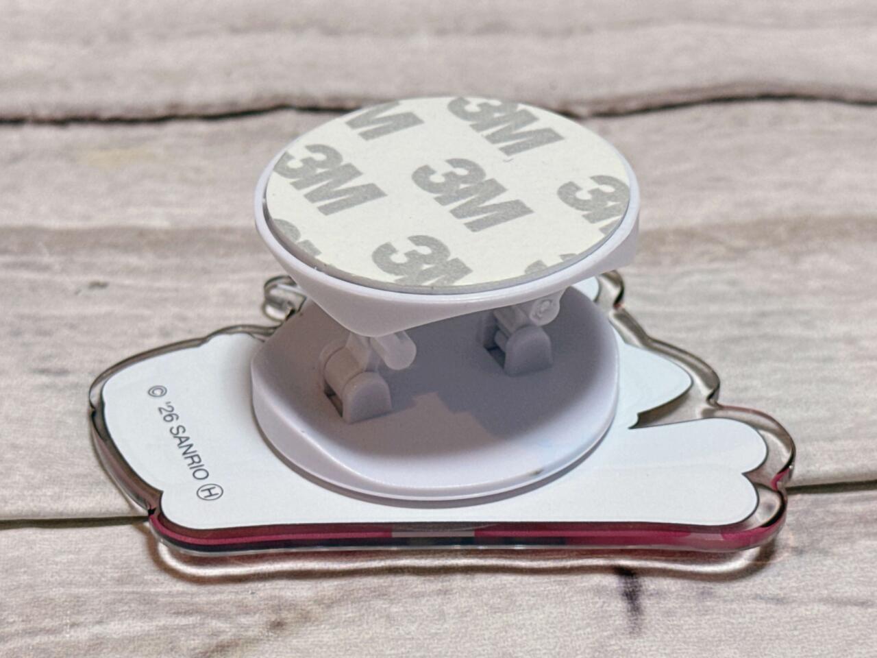 スマホグリップは、雪焼けキティちゃんのダイカット仕様でインパクト抜群。アクリル素材のしっかりとした作りも好印象です。