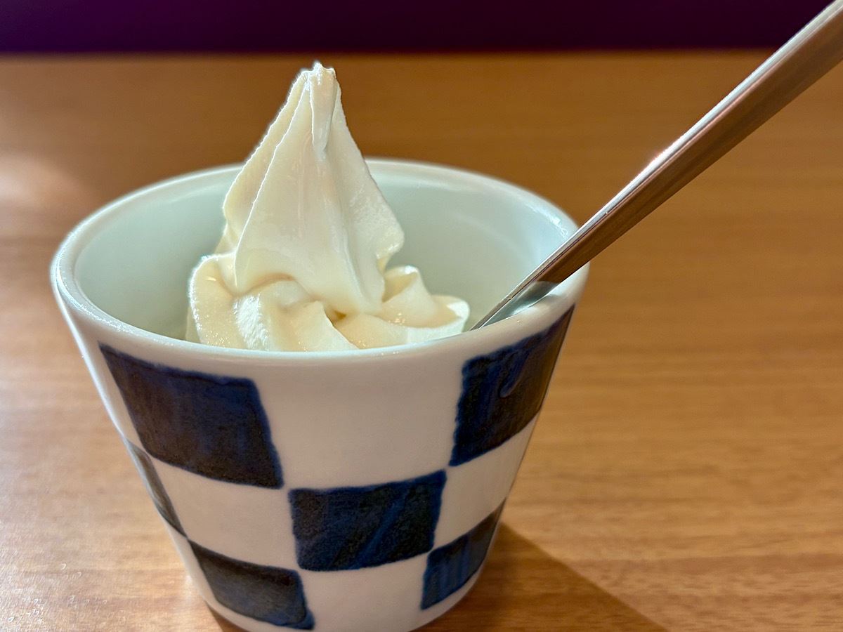 他の店だと3,000円の食べ放題についてくるソフトクリームは植物油脂のさっぱりしたものが多く、それはそれで美味しくて好きなのですが、夢庵ではなんと北海道産の生乳を60%も使った濃厚なソフトクリームを食べられるんですっ!