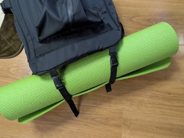 フロントには浅めと深めの2つのファスナー付きポケット、両サイドにはドリンクや折りたたみ傘を入れられるポケット、底部分にはヨガマットや寝袋を留められるバックルまで搭載されています。