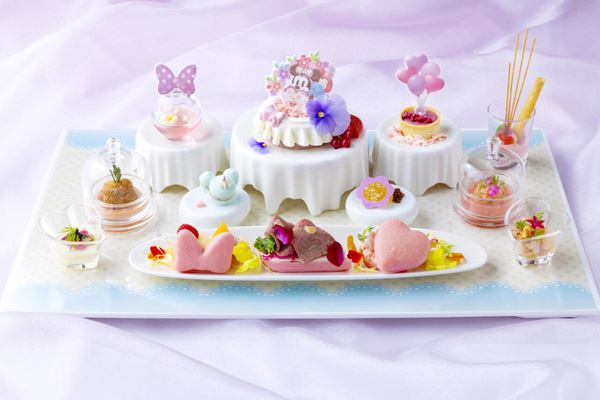 春の日のミニーの夢を表現したケーキセットや、ドット柄のリボンをかたどったサンドウィッチとソフトドリンクのセットなどが登場します。
