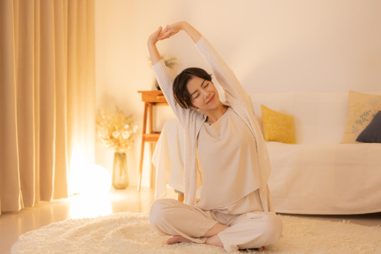 ストレッチでからだを動かすことも、冬の高血圧対策につながります。ストレッチで筋肉を伸ばすことで血流が改善するとともに、体内で熱が生まれます。これにより寒さに強く体温を維持しやすいからだになり、血圧の乱高下を防ぐことにつながるのです。