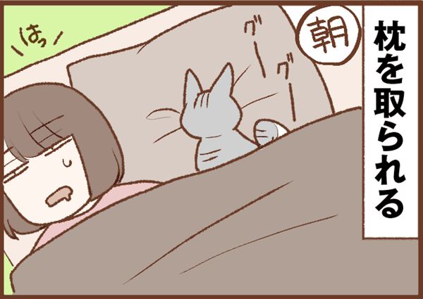うちではリンちゃんもそうですが、トトも首とか頭を少し高いところに乗っけておくほうが楽に寝られる猫らしく、枕は本当に取られます…。
