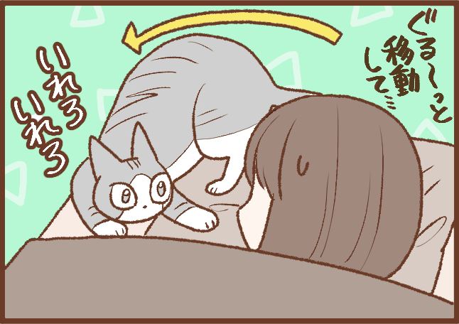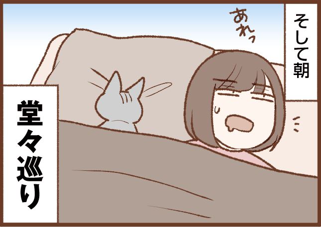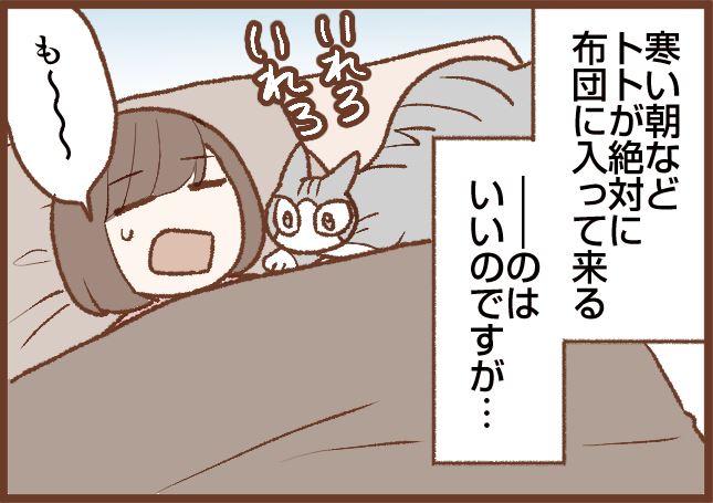 トトが布団に入ってくるときの話って、この漫画でも何回か描いてきたのですが、何回描いても描くことあってすごいなトトは!!!となっています(笑)。