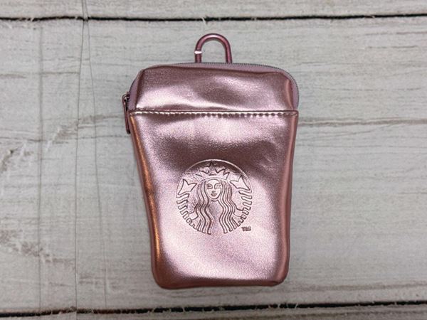 レザー調の生地にラメがキラキラと輝き、高級感たっぷり。スタバのカップを模したデザインで、フロントにはサイレンロゴの型押し入りです。