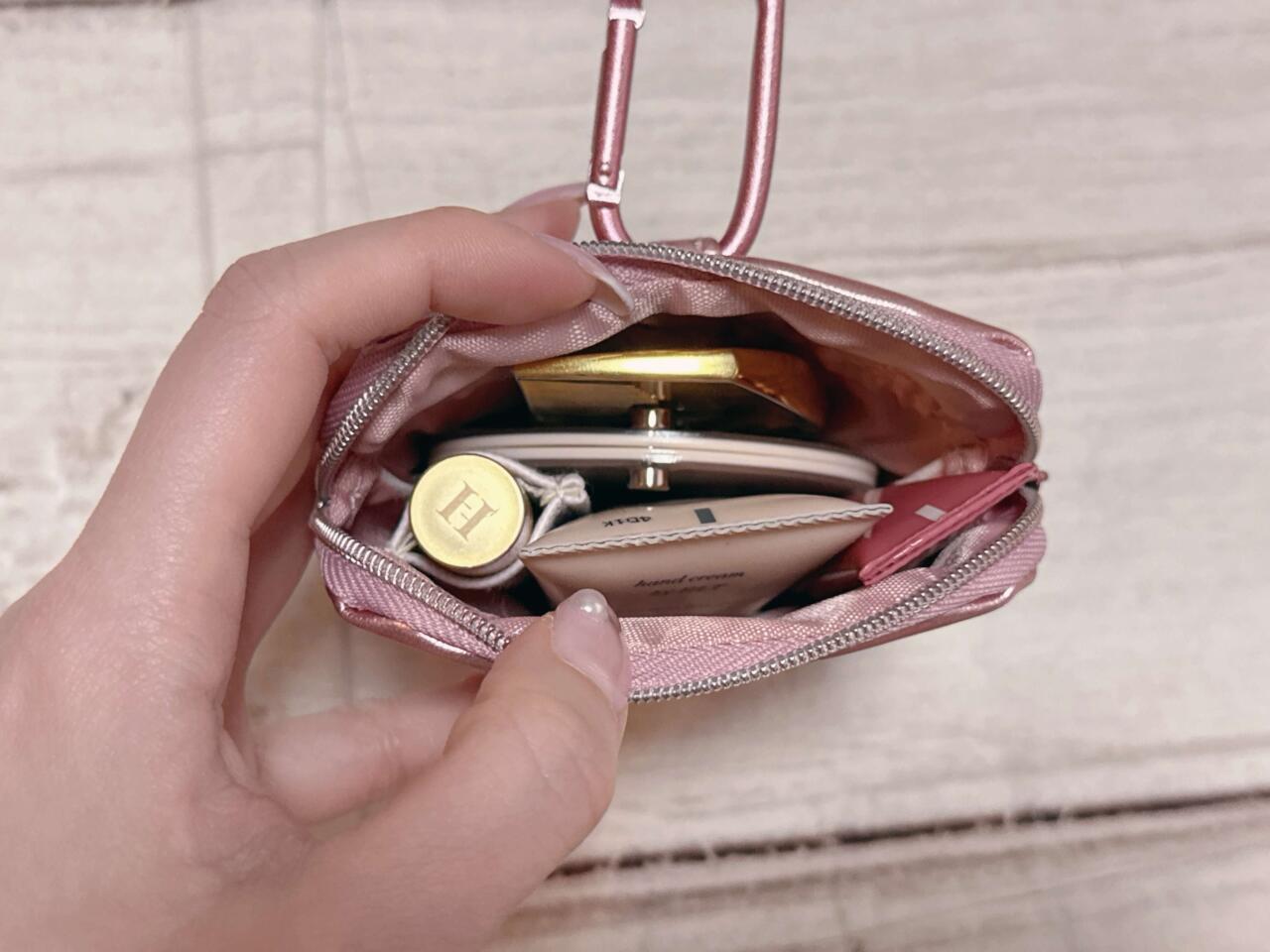 人気のミニポーチがキラキラピンクになって登場♪絶妙サイズが◎
