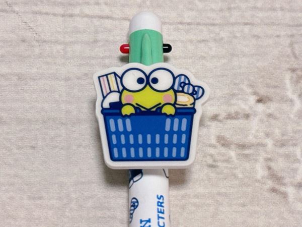 ボールペンは、ポムポムプリン(9)/シナモロール(10)/けろけろけろっぴ(11)の3種類。コンビニのくじでは、キャラクターを選べるものがありますが、「ローソン50th Anniversary サンリオキャラクターズ当りくじ」では引いたくじにキャラクターが指定されています。今回はけろっぴをゲット。