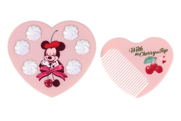 ハート形のミラーは、さくらんぼを前に笑顔のミニーをデザイン。