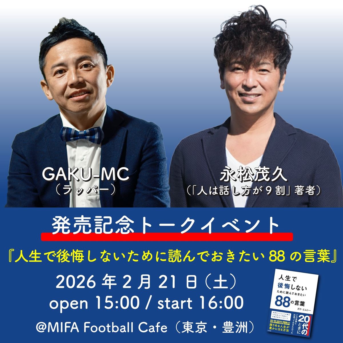 イベント内容:GAKU-MC × 永松茂久氏(『人は話し方が9割』著者)トークセッション・お渡し会(サイン・ツーショット写真会)