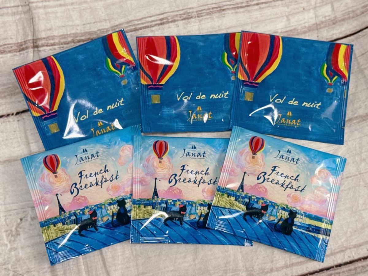 【カルディ ネコの日バッグ/ジャンナッツ 2種アソートバッグ】個包装のティーバッグが各3個ずつ入っています