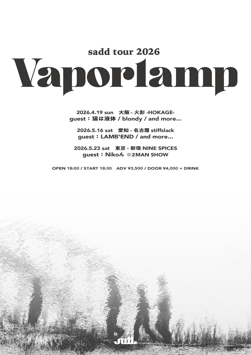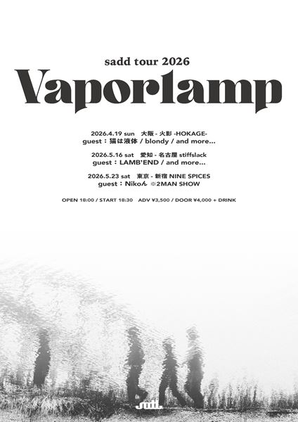 併せて、初の全国ツアー sadd tour 2026 “Vaporlamp” の開催も決定。共演アーティストも発表され、大阪では猫は液体、blondy、名古屋はLAMB’S END、東京公演はNikoん が出演する。ツアーのゲスト、会場は随時追加される予定。