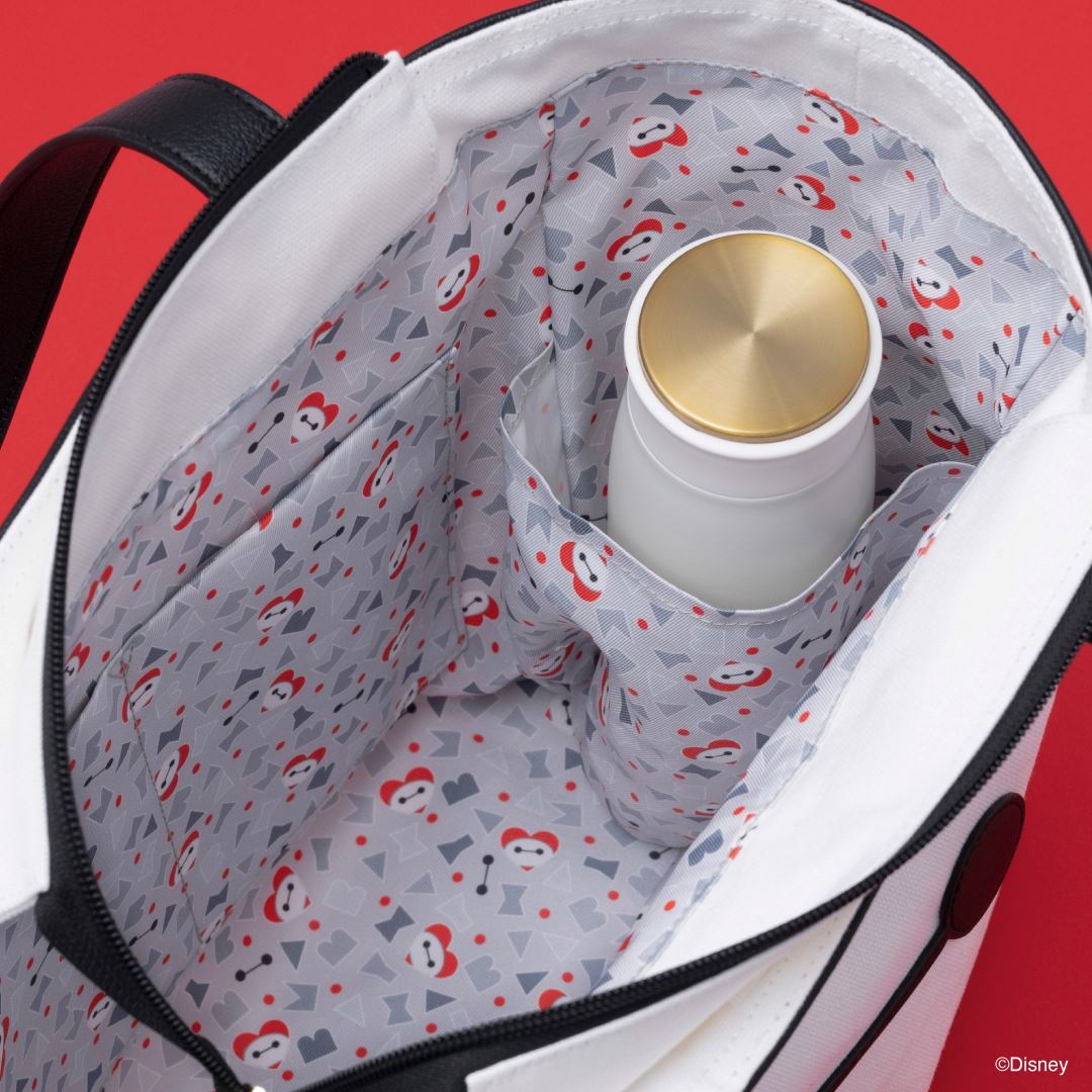 リュックもトートも、内面にはベイマックスとハートを総柄プリントしています。