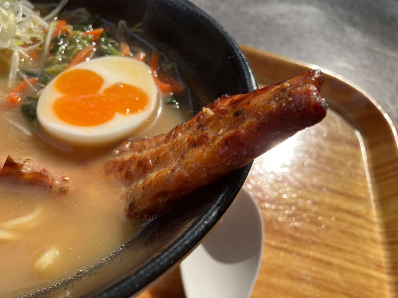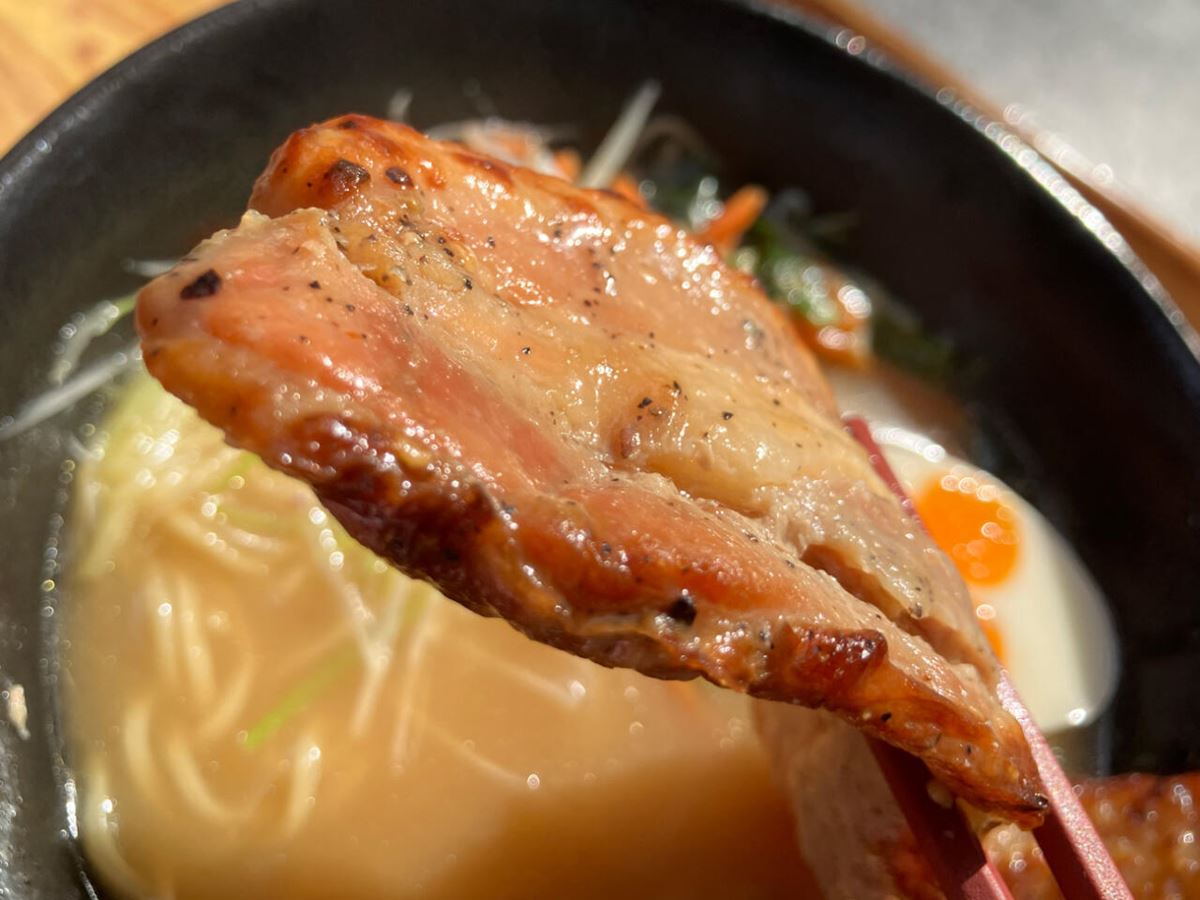 万人に好かれるであろうスープも含め、ラーメンとしては非常にバランスの良い仕上がり。そこに過剰なまでにメガサイズなチャーシューの“非日常感”が加わることで、得難い一杯になっていると思いました。