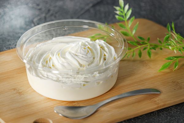 上にはホイップクリームが絞られており、その下にはミルクプリンが敷き詰められています。