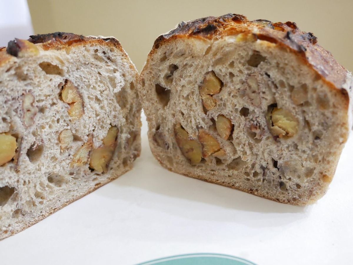 ライ麦と水で作られる、天然酵母を使用したサワードゥ生地をベースに、栗が贅沢にたっぷりと混ぜこまれた『栗のサワードゥブレッド』。